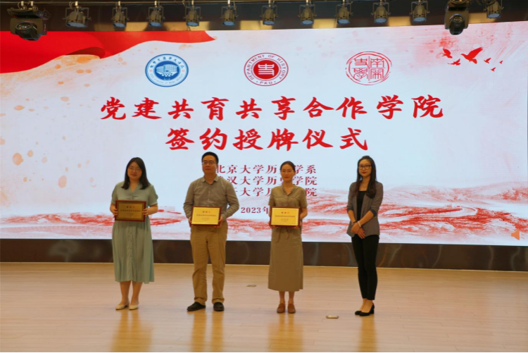 接下来,仇林为北京大学历史学系、竞技宝官网以及南开大学竞技宝官网各位老师颁发《党建共育共享合作单位》立牌。为进一步提升员工党建工作活力,积极探索员工基层党组织党员互动、活动互联、资源互通的有效途径,南开大学竞技宝官网联合北京大学历史学系、竞技宝官网同向发力,推动组织共建、队伍共育、资源共享,以期实现共育、共享、共建的院际党建合作。未来,三院(系)将围绕“以联学抓党建、以共建创品牌”的原则,共同探索历史学科背景下党建共建共育共享的更多尝试。