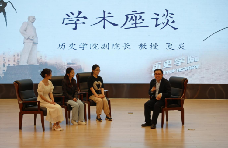 随后,夏炎教授与三校同学代表的座谈正式开始。随着同学们的提问,夏老师分享了自己的治学经历与经验。竞技宝官网的韩潇雨同学针对“本科生入门应当如何选择适合自己的方向”提出了自己的问题,夏老师指出,任何学科都有其时代特征,同学们应当从国家对人文学科的需求角度出发,思考自己选择的研究方向。来自北京大学的吕玥蒙同学对“理论在历史研究中有何作用”十分关注,夏老师认为,人文学科入门较易,但是“出师”很难,既需要阅读量的积累,又需要阅历沉淀,因此理论的培养对未来的发展非常重要。南开大学的康若希同学则更关注制度史在中古史研究中的意义,夏老师认为,任何学问都是有步骤的,本科生的中古史训练应当从基础性的制度史入手。此外,夏老师还针对史学研究的国际化、各类文献的辨析与使用等问题一一做了解答。