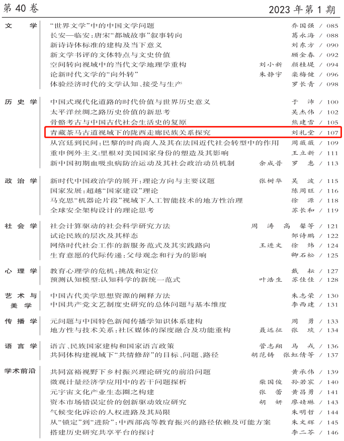 【高等学校文科学术文摘】刘礼堂:青藏茶马古道视域下的陇西走廊民族关系探究